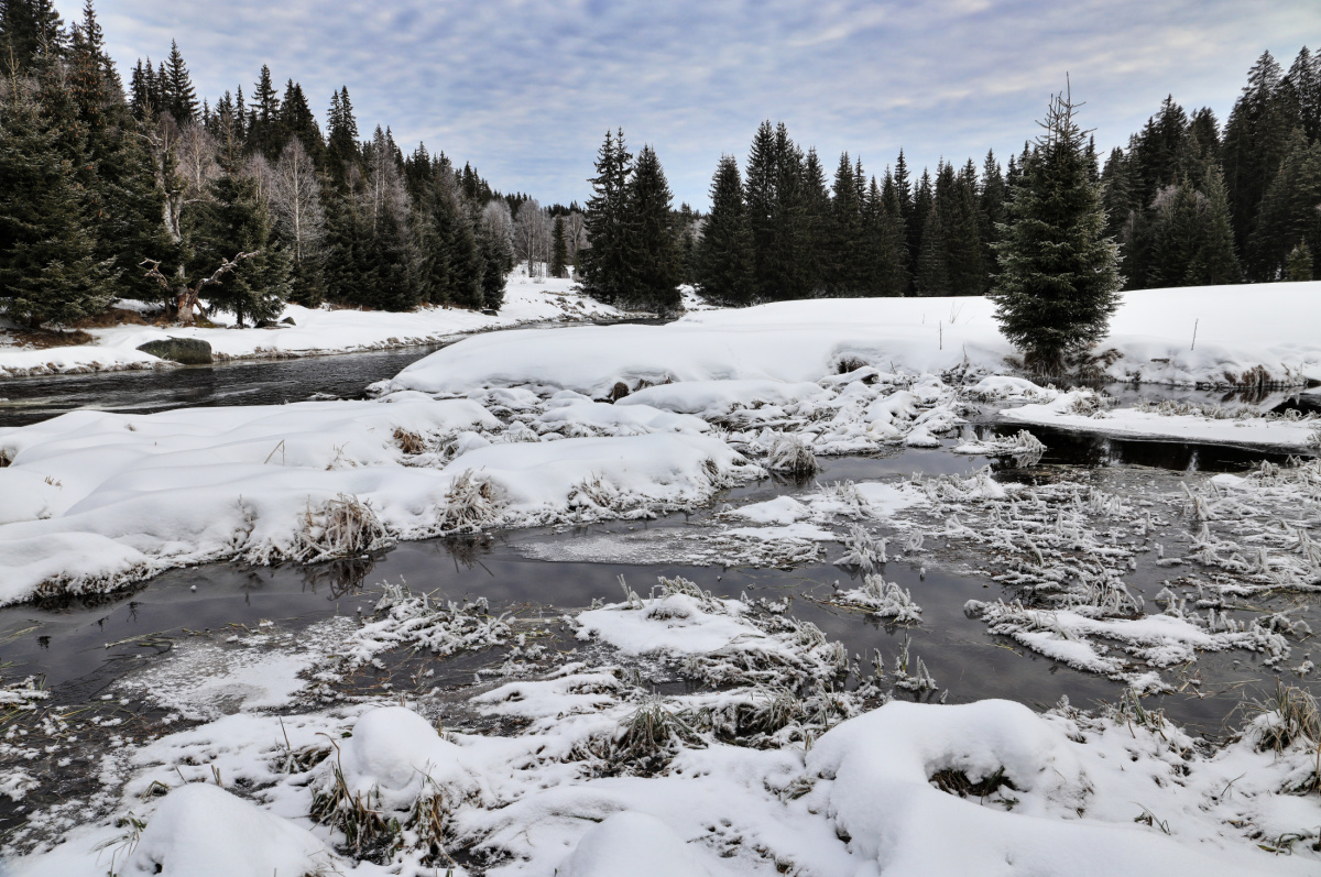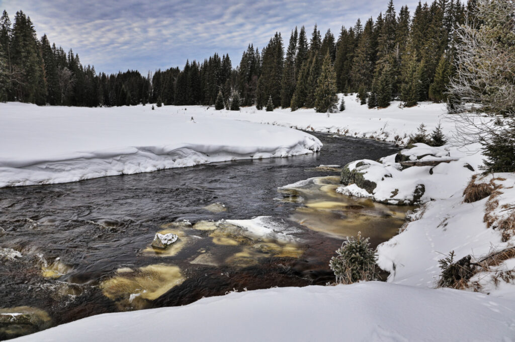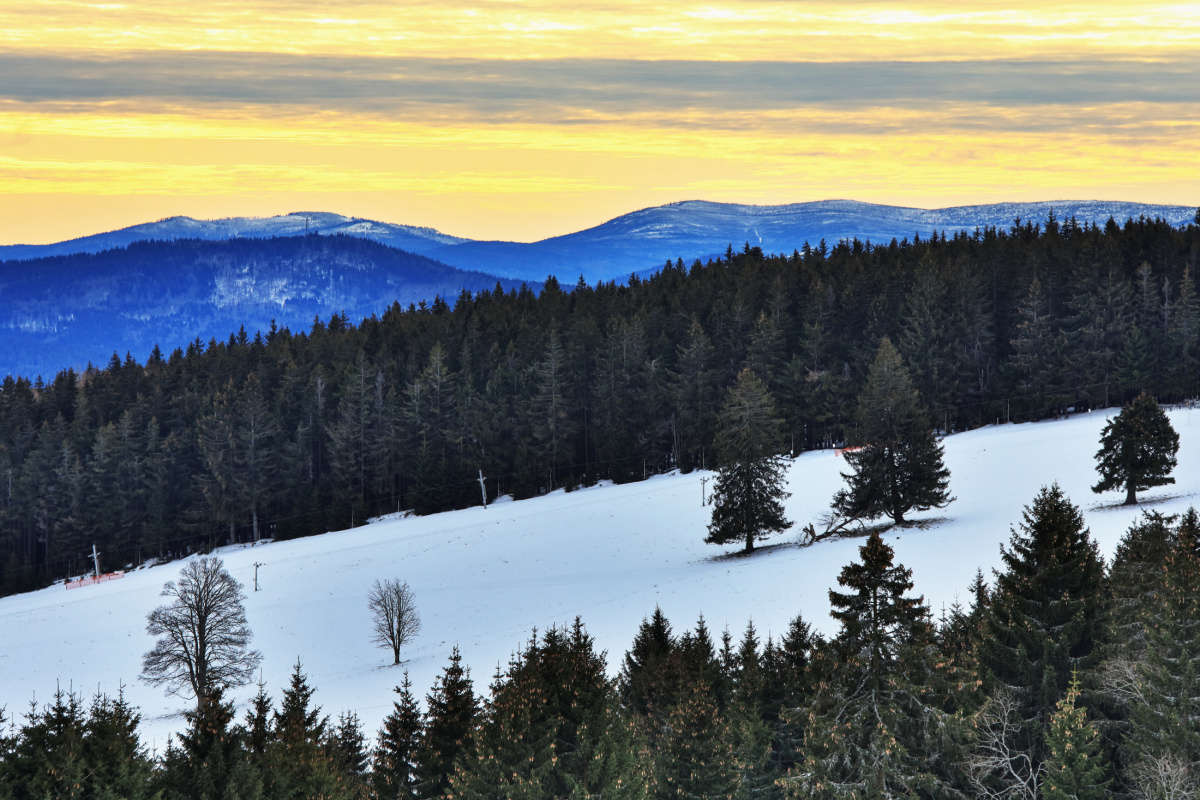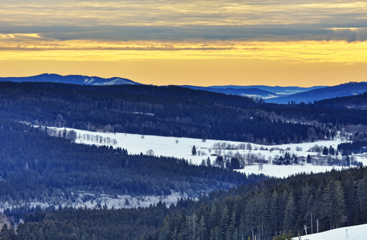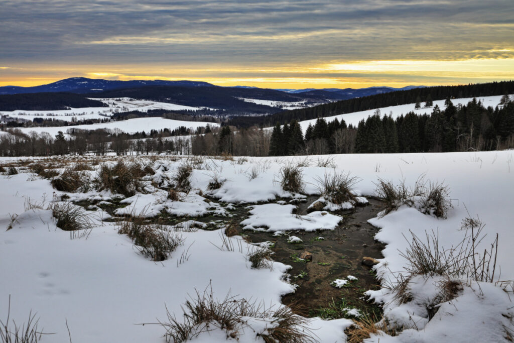 V úterý ráno jsem byl pod Přilbou a byly pěkné pohledy na Boubín, Smrčinu a Plechý. Jel jsem na běžkách z Modravy kolem Modravského a Javořího potoka, byly super stopy a zajímavá obloha. Odpoledne byly ještě vidět Alpy (Gr. Priel) ze Švajglovy Lady.