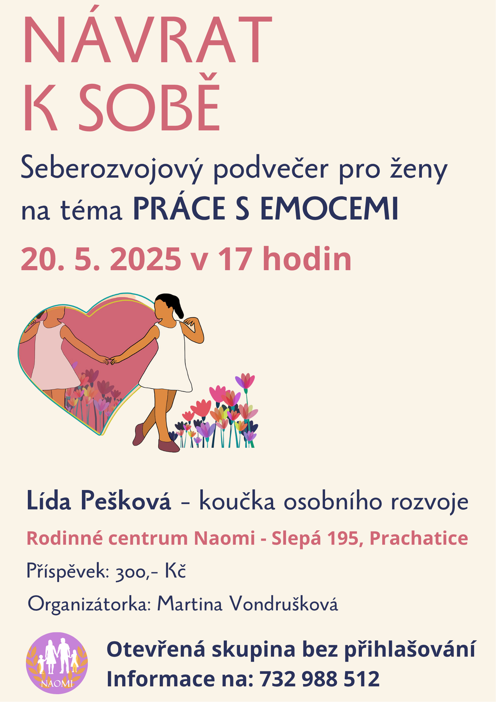 Pozvánka na seberozvojový podvečer pro ženy v úterý 20.5.2025 v Rodinném centru Naomi
