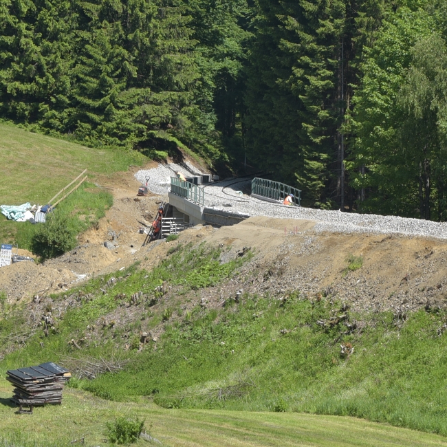 Budování železničního viaduktu pod Kubovkou spěje mílovými kroky do finále. Již jsou položeny koleje …
