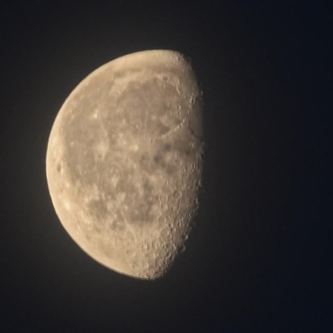Couvající Měsíc, zahalen v oparu, působil zasněným dojmem, i přes zákonitou rozostřenost ovšem přiznávajícím strukturu kráterů.