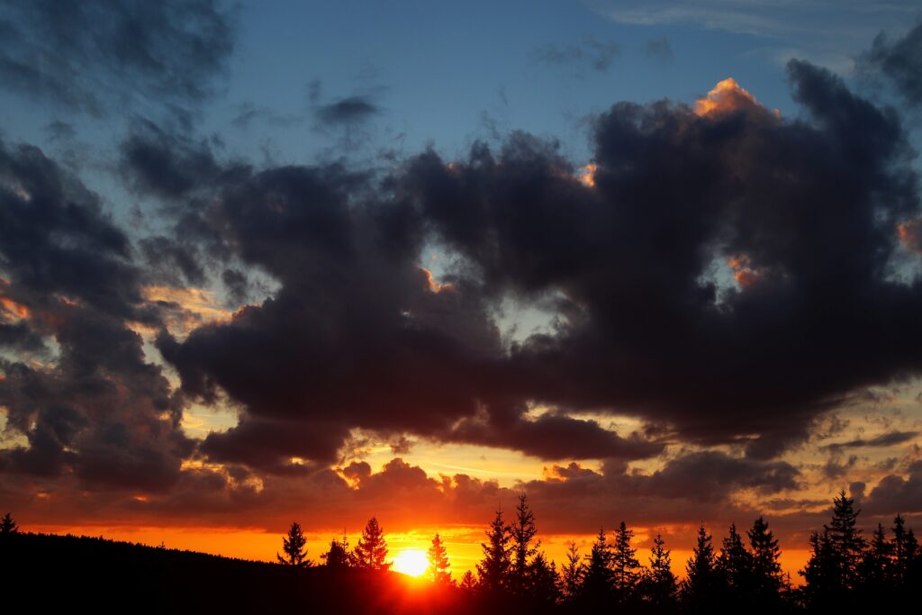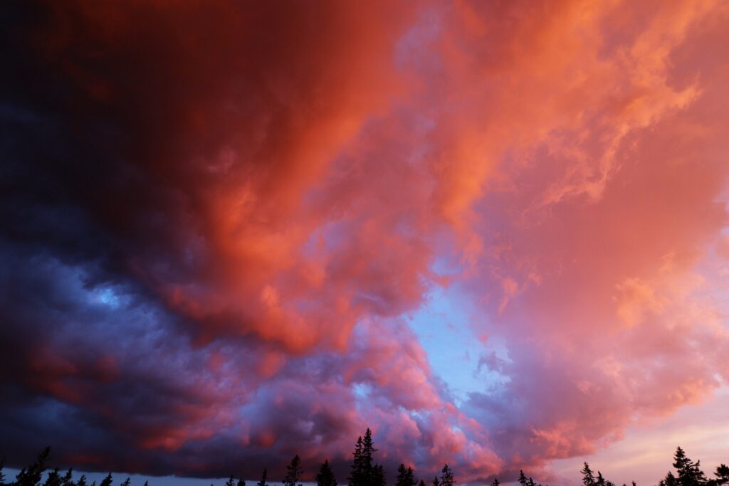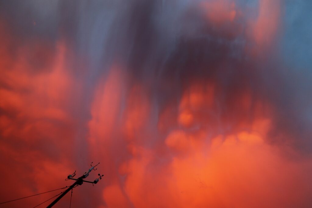 Na Churáňově mě probírá ze zamyšlení sílící hukot větru. Temná základna kumulů se valí od severozápadu, stěna přeháňky zatahuje od severu obzor jak opona. Slunce propadá pod mračna k obzoru, nabírá zlatě rudé odstíny a osvětluje celou oblačnou stavbu s rozervanými hradbami. Eliáš letí na ohnivém voze do nebes? Vtom dopadá na střechu stanice zářivá přeháňka. Zahalen zlatým závojem stojím na ochozu, nechám se profukovat větrem a promáčet kapkami. A pak se přímo v zenitu zjeví nejvyšší patra kumulonimbu. Ze zcuchané klenby kovadliny visí vemena doprovodného oblaku mammatus. A celý ten chrám zvolna odplouvá a jeho odstíny tmavnou a tmavnou.