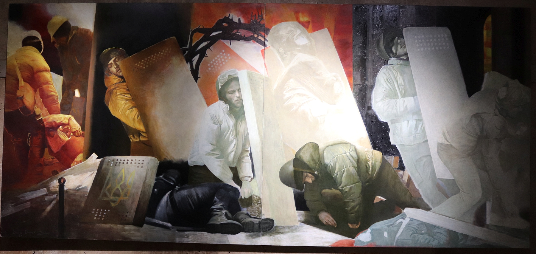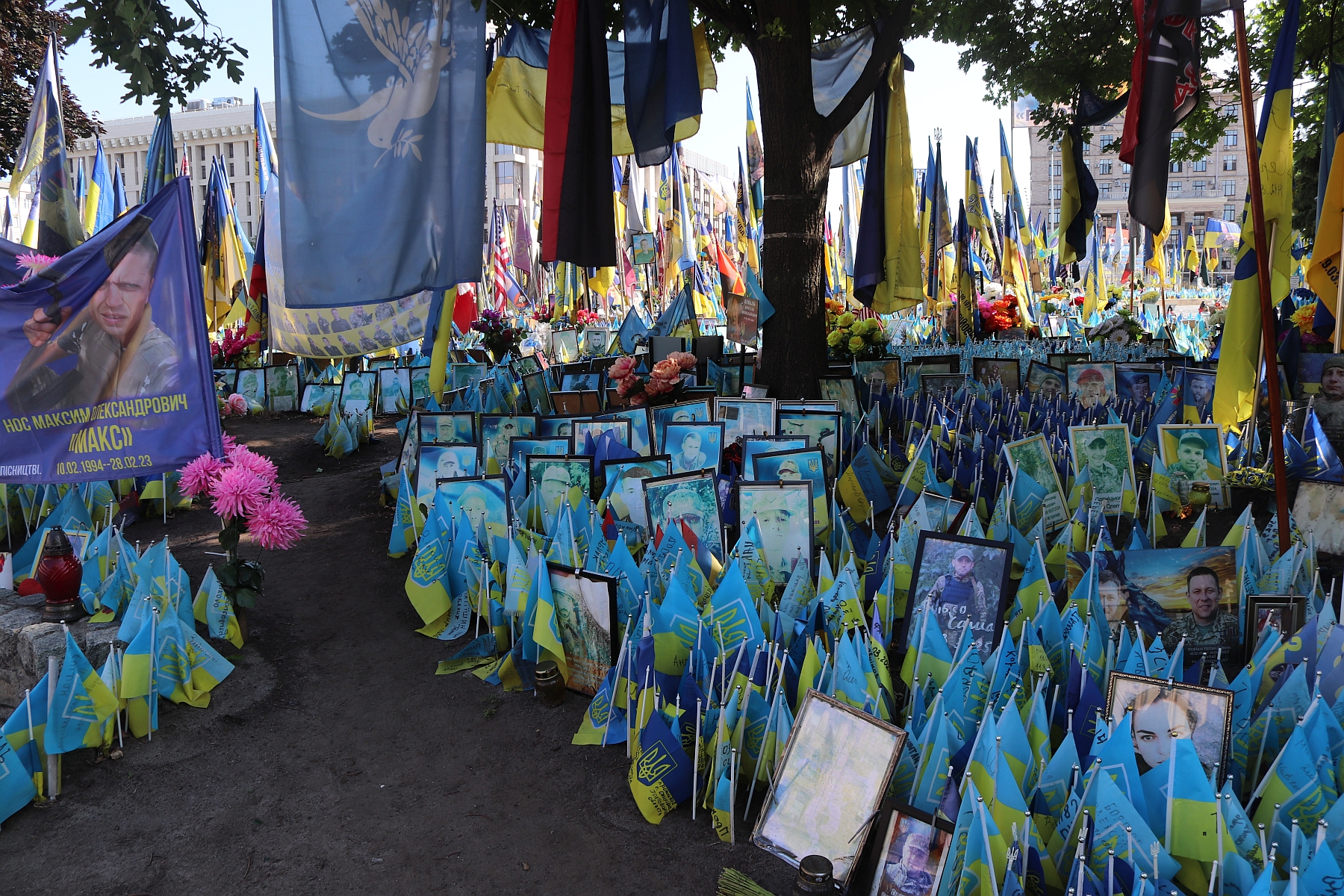 1) Praporky za padlé ukrajinské vojáky na kyjevském Majdanu