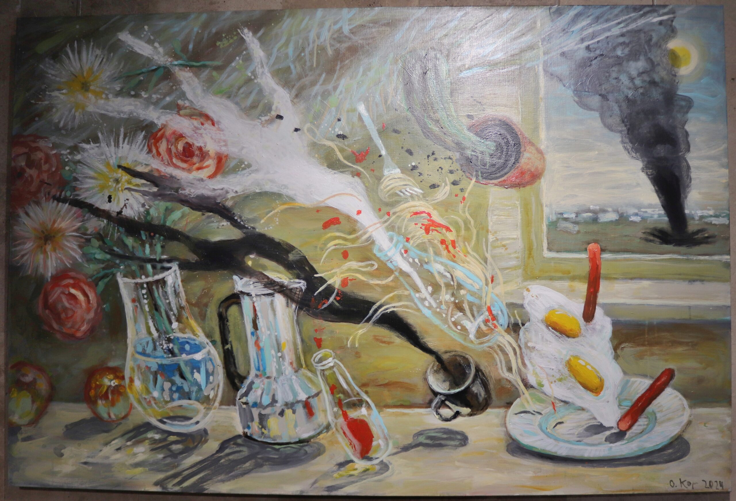 K večeru se vydáváme na další procházku a na večeři jdeme do už známé korčmy Taras Bulba. Stále mám hroznou žízeň. Piju uzvar, je to fantastický uzený nápoj ze sušených a pak uvařených hrušek, švestek a jablek. A pak do sebe klopím další sklenice kvasu, živého točeného nápoje, ve kterém to pění a bublá. Tak se děje i v mých střevech. Na záchodě zní jakási ukrajinská próza, patrně jde o nějaké drama, opakují se jména hovořících postav. Ozývají se sirény. A hlas z tlampačů varuje: Dodržujte bezpečností pravidla a zůstaňte v krytech. V ukrajinštině to zní jako útulky. Aplikace v mobilu ukazuje blížící se dron Šáhed a balistickou hrozbu ze severovýchodu. Číšnice nám nabízí kryt. Ale my odcházíme dolů na bulvár Chresčatyk k budově Azovstalu. Stále tu uhánějí vytuněná auta a motorky a před podniky majícími lákavý název Bělij náliv postává mládež. Mě prohánějí střeva. Místo ze sirén mám obavy z toho, že si nadělám do kalhot. Na klozet mě pustili v arabské kavárně Kafe daš.