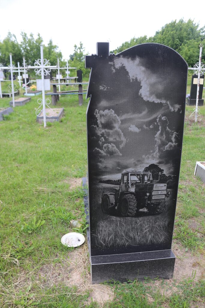 21) Traktor na náhrobku na hřbitově ve Velké Zahorivce