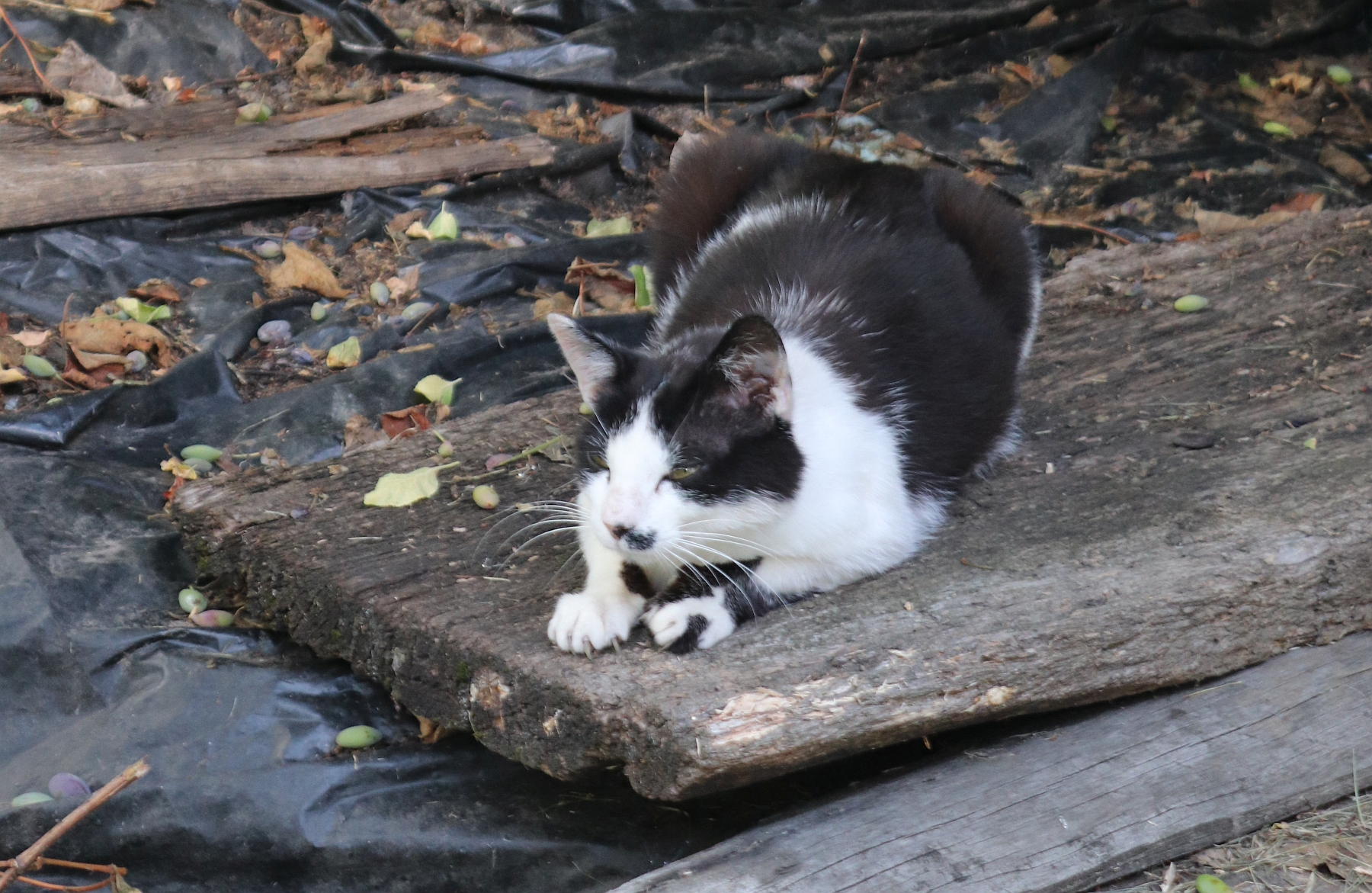 Na jedné kůlně je o střechu opřený žebřík, na něm cosi kutí dva muži. Vidím kočku na plotě, chci si ji vyfotit, ale to už starší z obou mužů slézá dolů a se slovy „Šó snimájetě?“ se ke mně hrozivě blíží. Vita si toho včas všimne a říká muži, že nefotím jeho dům, ale kočku. On nevěří, kouká na ni, na kočku. Vita mě poučuje, že si tu nemohu jen tak něco fotit, leda už opuštěné chalupy. Místní jsou nedůvěřiví, kraj je plný uprchlíků z válečné fronty. Docházíme k rybníčku a osamělému rybáři, který se za námi ani neotočí. A pak se ocitáme na křižovatce, kde stojí opuštěný magazín, před ním rostou kupodivu pěstěné, sestříhané keříky. Bolí mě klouby, šli jsme tou vsí dál a dál snad čtyři kilometry a stále nová a nová stavení se před námi zjevují. Využívám zastávky autobusu, pochybuju, že tu ještě něco jezdí. Blíží se ke mně dědula v kšiltovce, sotva šourá nohama, ale skroluje mobil. Začíná pršet, Vita a Jirka jdou napřed, já odpočívám a vychutnávám šum ukrajinského deště. Pak přidám do kroku a za chvilku oba dojdu. Už i čápům jsme podezřelí. Jeden přiletěl až k nám a posadil se na sloup elektrického vedení. Objevuje se duha.