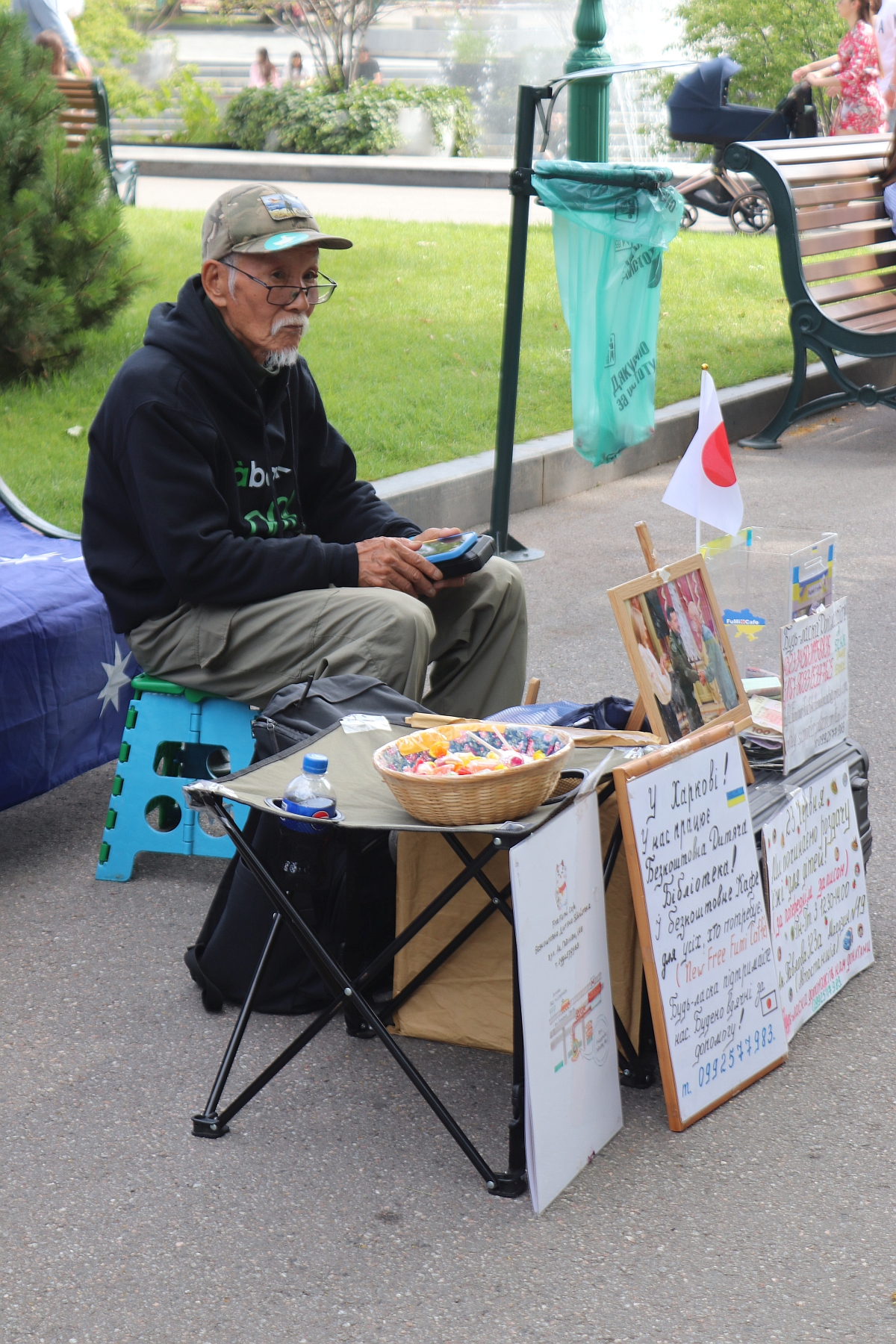 Docházíme k Sadu Tarase Ševčenka. Žena kropí záhon s květinovým nápisem Слава Україні. Jakási dívka podobná Sněhurce pózuje fotografům. Sedí na chodníku, šaty rozložené kolem sebe. Blížíme se k zoologické zahradě. Hned vedle ní stojí charkovská meteorologická stanice. Je to tak trochu cíl této mé ukrajinské pouti. Škoda, že v pohledu na přístroje brání vysoký plot. Opodál sedí na lavičce Japonec. Prý je to Fuminori Tsuchiko, který se hned po začátku ruské invaze rozhodl odejít z Japonska a pomáhat lidem zde. Usadil se v Charkově a organizuje nějaké charitativní akce. Sedí tu na židličce, usmívá se, zdraví nás a mám najednou hřejivý pocit, že nejsme tak zcela ztraceni, když se najdou lidé, kteří touhou pomáhat promění celý svůj život. Jejich čin promlouvá prostotou i odhodláním. Jsou to planoucí svíčky ve tmě. Nezachrání všechny potřebné, ale probudí naději.