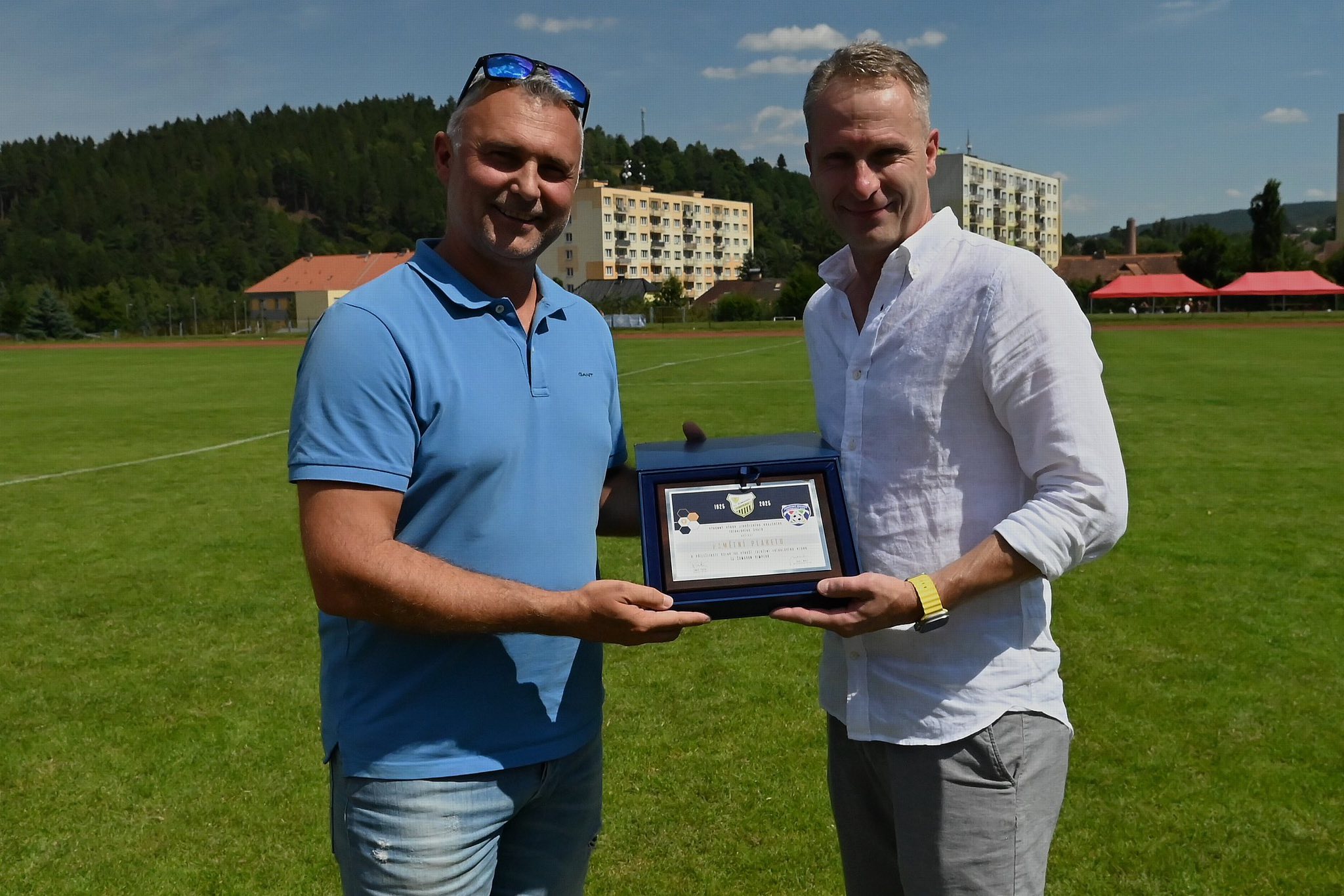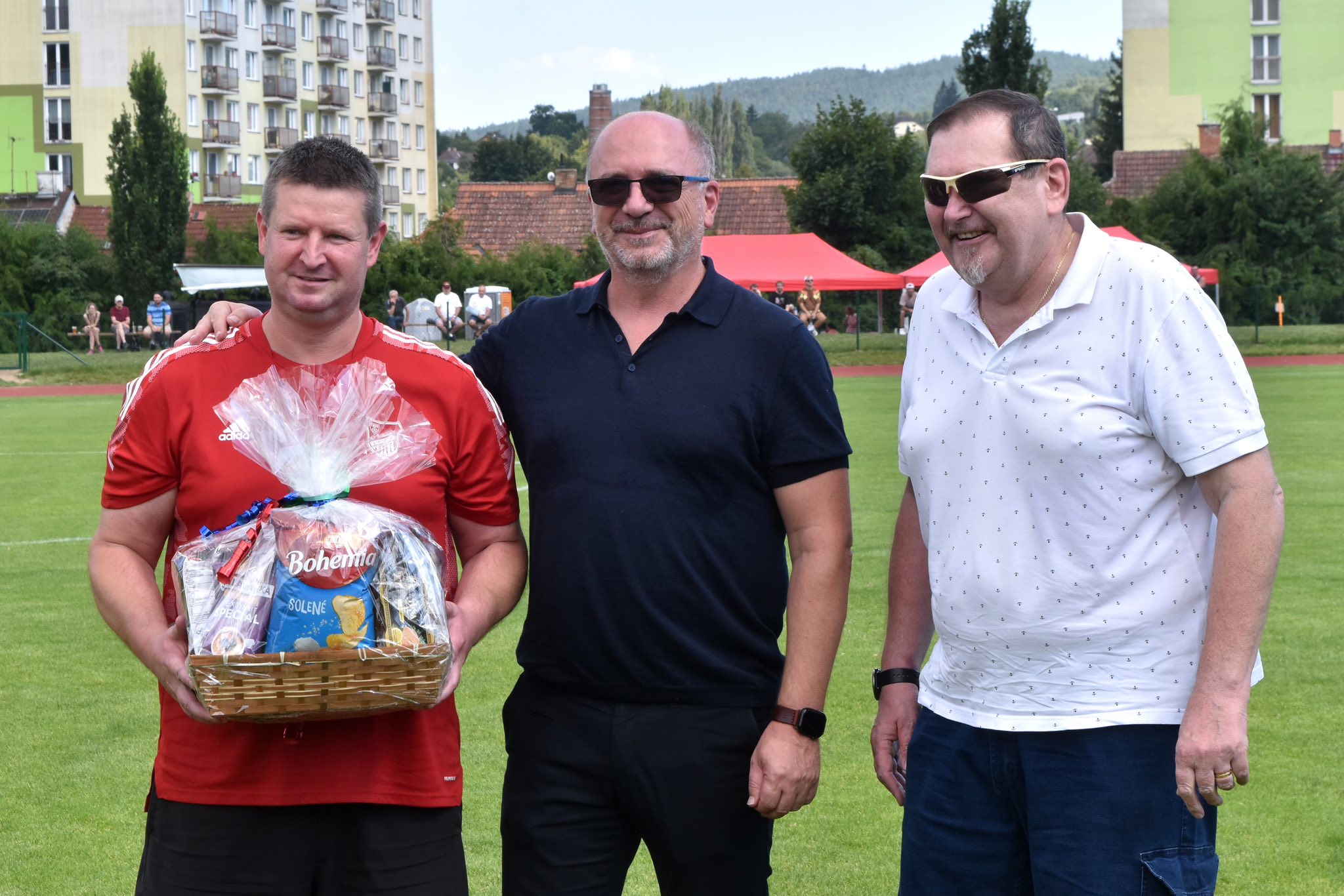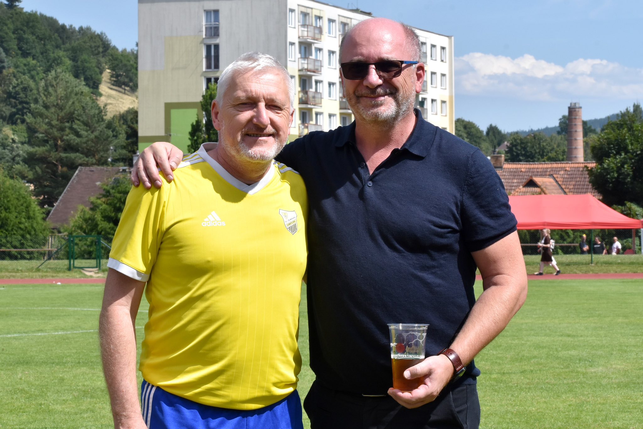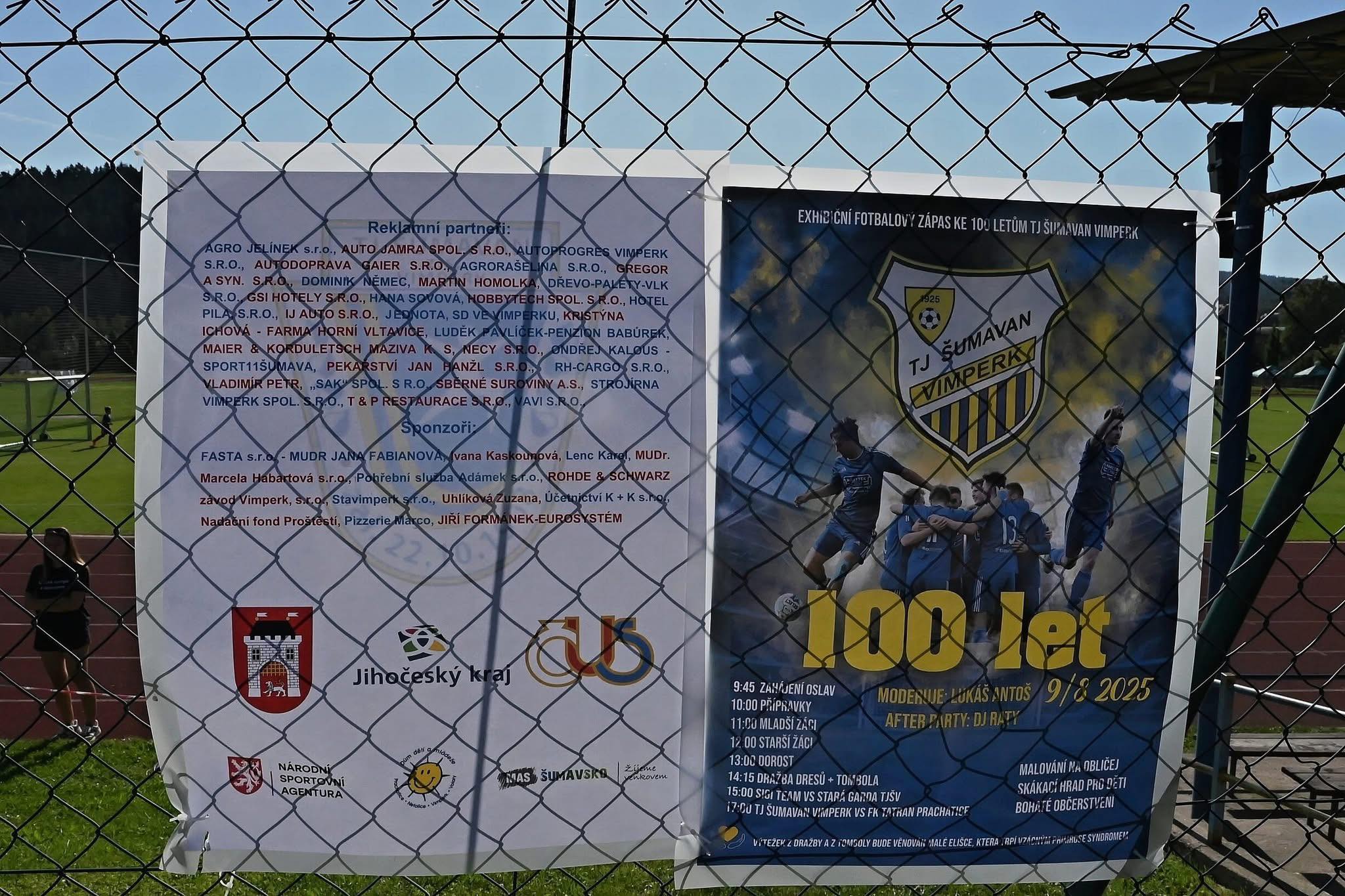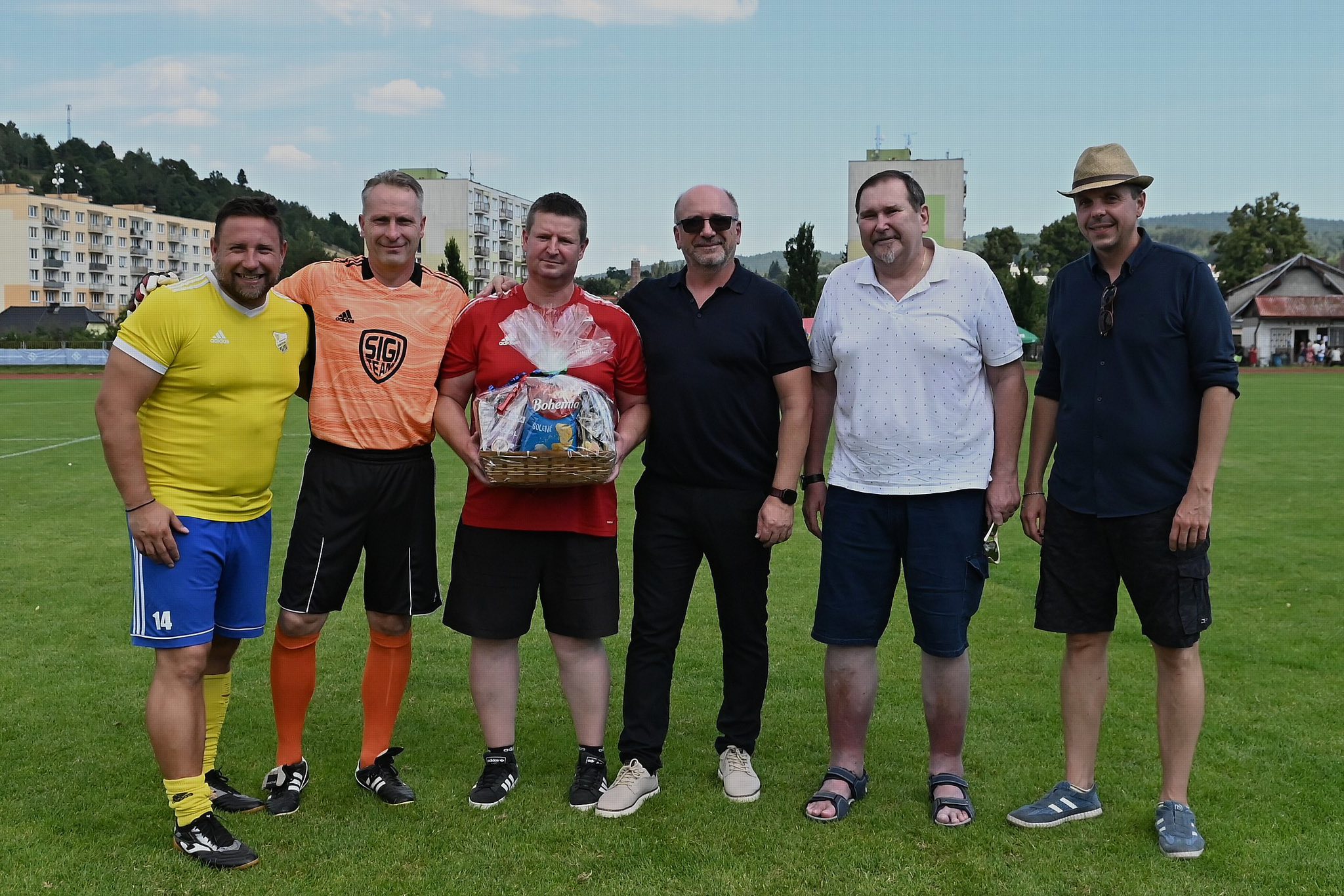 Odpolední vrchol přinesl v 15:00 zápas naší staré gardy proti Sigi Teamu. Do Vimperka zavítaly legendy českého fotbalu – Horst Siegl, Tomáš Řepka, František Straka či současný hlavní trenér české reprezentace Ivan Hašek. Před samotným utkáním jsme vzdali poctu Jaroslavovi Uhlíkovi za jeho dlouholetou práci pro klub. Následoval krásný moment: Jiří Formánek a Horst Siegl předali Elišce Malé šek na 130 000 Kč na podporu jejího boje s Primrose syndromem. Exhibiční utkání ovládl Sigi Team, byť nejtěsnějším možným rozdílem – 7:6.