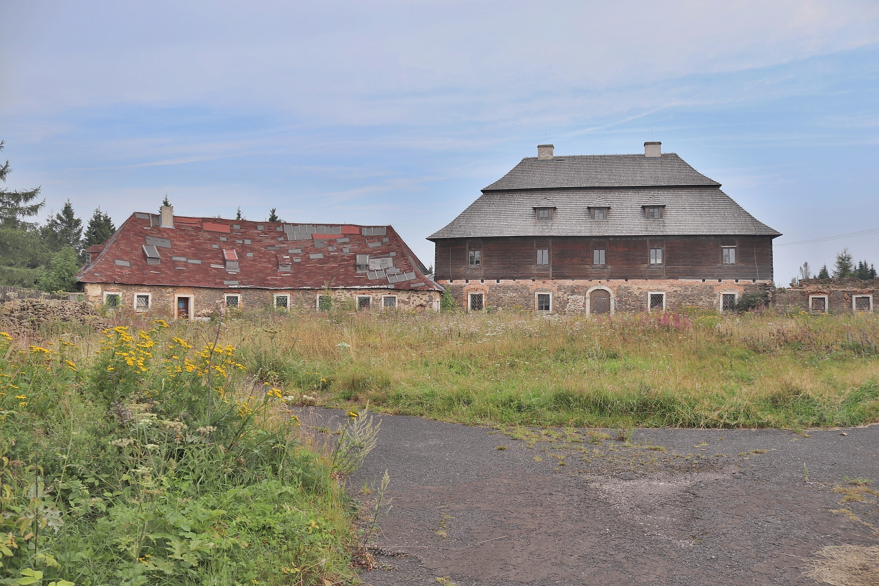 Zakotvili jsme v hospodě Stará škola na Klínech. V Krušných horách, zdá se, musí obsahovat název pohostinství slovo starý, jinak si podnik neškrtne. Na Novém Městě je Stará Myslivna, v Českém Jiřetíně u saských hranic Na Staré Poště a Stará Hračkárna a na Klínech Stará Škola. Číšník s převislým břichem má na černém tričku napsáno ALTE ŠULE. První pivo nám přinesl hned, na druhé zapomněl a museli jsme se mu připomenout. U druhého stolu sedí nějaká studentská omladina, jeden z chlapců odbíhá na zřejmě soukromý orientační běh. My máme naši cestu snadnou. Je jí jak přímka natažená lesní cesta od silnice mezi Flájemi a Klíny na vrchol Bradáčov. Už zespodu vidíme nahoře v průseku budovu zámečku z roku 1767. Máme před sebou asi dva kilometry s převýšením pouhých sedmdesát metrů, ale cesta se vleče. Vždy se hůř stoupá v přímce než serpentinami. Nahoře shazujeme batohy v přístřešku. Zatím co přes den vystoupala maximální teplota v Kopistech u Mostu na 36,8 °C a v Praze se nedalo ani dýchat, tady se ochlazuje a obloha se jeví neklidnou. Asi ještě budeme rádi za střechu nad hlavou, i když si musíme natáhnout karimatky na betonovou podlahu. Škoda, že je zámeček tak zpustlý. Dánský šlechtický rod, kterému patří, je zřejmě na mizině. Prodat ho nechce. Dovnitř se nesmí, ani na oválné nádvoří. Na dřevěném sloupu je připevněný starý televizní satelit a na vratech hrozba, že jsme snímáni kamerou hlídači Group 4. Přirozeně je to dánská bezpečnostní firma. Před devět a třiceti lety jsme tu celý zámeček zaměřovali. Patřil státním lesům, které ho chtěly rekonstruovat.