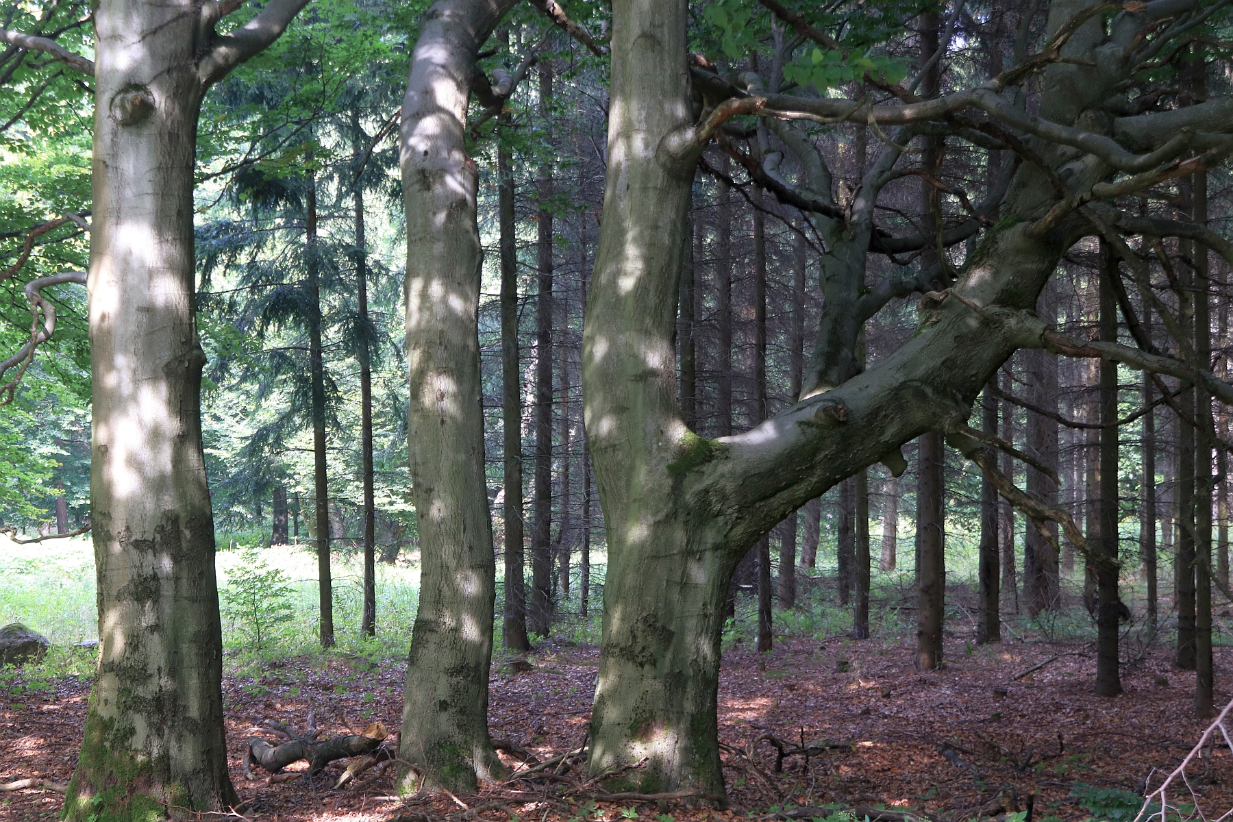 Fascinuje mě opačný pohled přes Geising na Komáří vížku a přes Altenberg na Cínovec. Škoda, že obzor halí opar a není dobře vidět. Míříme do vrcholové restaurace a dáváme si pivo Rechenberger. Sedíme venku na zahrádce. Corliss má problém skoro s každým, kdo vychází nahoru, především s cyklisty. Přichází Němka s dětmi a ptá se mě na něco, říkám, že mluvím špatně německy, protože jsem Čech, jí se rozzáří oči a zeptá se: Pa růsky? Otáčí se na děti a vše jim říká německy a pak rusky. Jsou to ukrajinské nebo ruské děti? Pak se vracíme do Altenbergu, kde máme auto, míjíme Wild – Apfel, divokou jabloň, Malus silvestris, strom roku 2013.