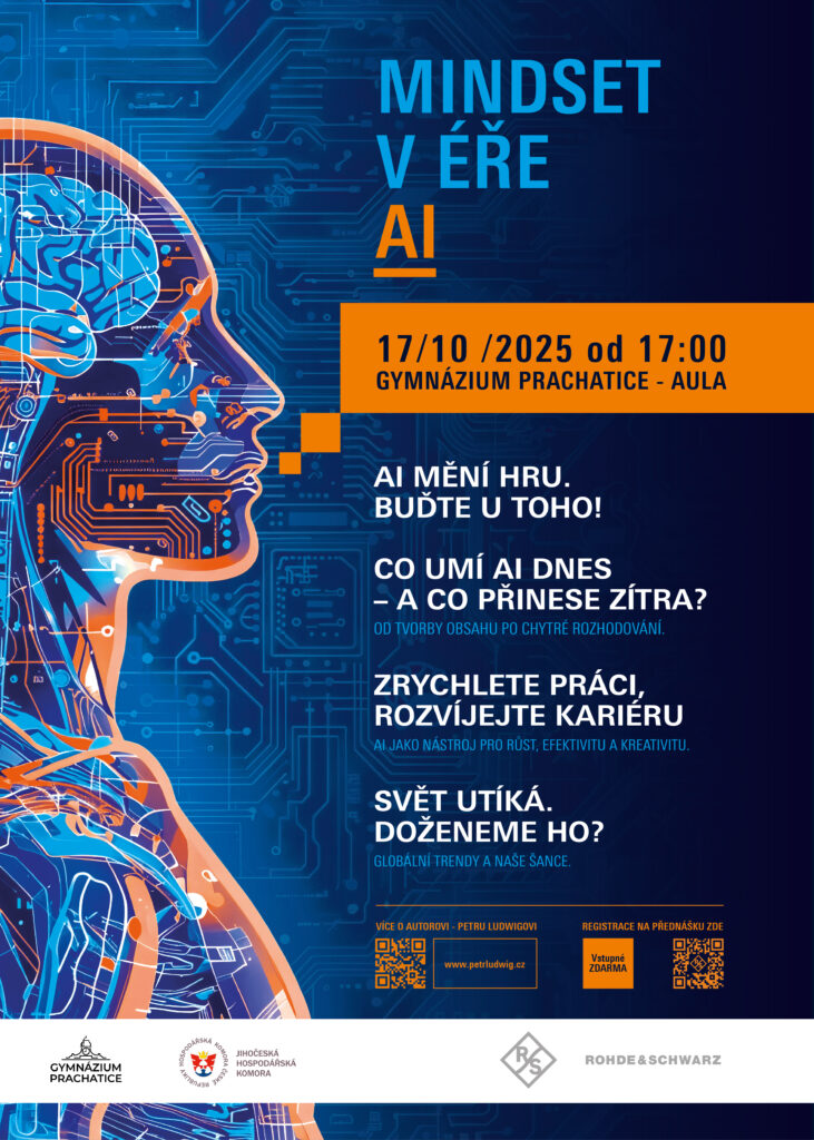Rohde & Schwarz Vimperk společně s Gymnáziem Prachatice a Jihočeskou hospodářskou komorou zvou na inspirativní přednášku Petra Ludwiga – “Mindset v éře AI”