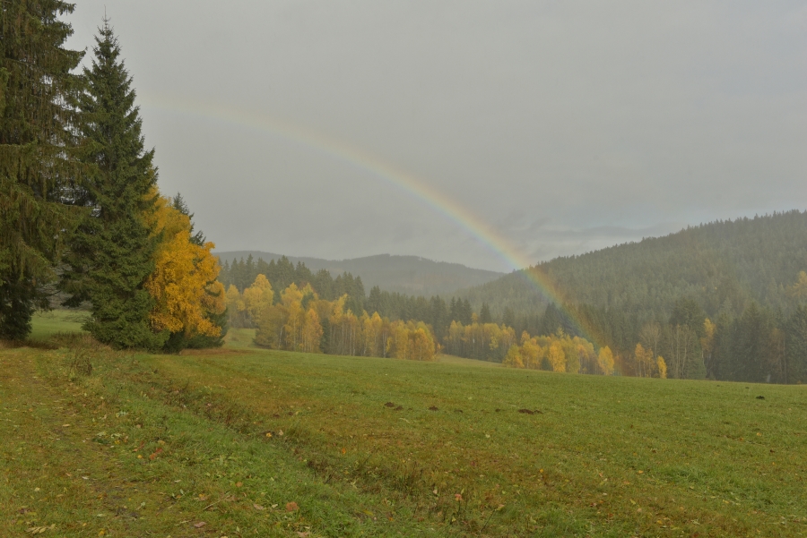 Také první říjnová neděle započala v příznivém barevném ladění, do nějž sice ještě promlouvaly občasné deště, ale jejich kompenzací byly nádherné duhy, …