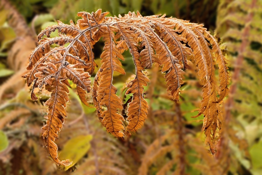 I včera vzpomínané zlaté kapradí vypadá po mrazivé noci jinak.