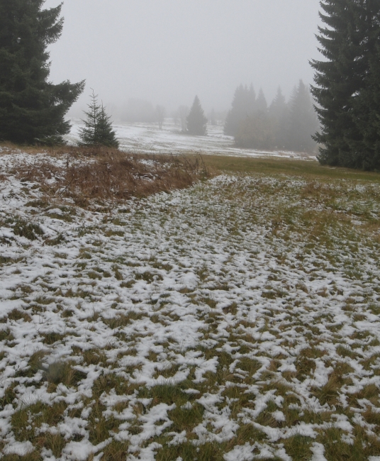 … že ve vyšších polohách Šumavy již nepřehlédnutelně leží první sníh.