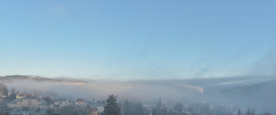 Po noční mlze, která zprvu slibovala návrat nedávných inverzních zážitků, přišel nad ránem krátký déšť, jenž prve řečenou situaci učinil pouhou epizodou. Jitro nabídlo za citelného poklesu teploty relativně čistou oblohu, …