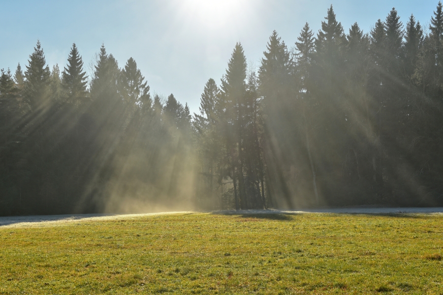 Ještě okolo jednácté se v nejednom lese nad Vimperkem zaskvěl Tyndallův jev (či efekt), vykouzlený průchodem slunečních paprsků putující mlhou, …