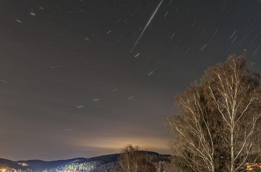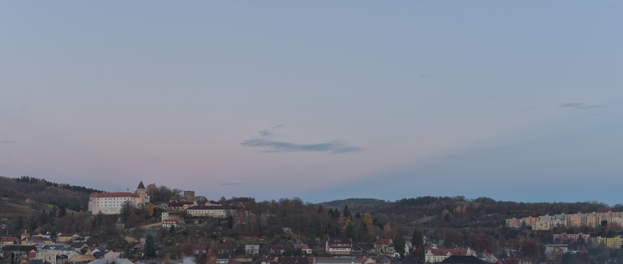 Ještě v nočních hodinách po slunečném, až nezvykle na polovinu listopadu teplém dni vykazovala obloha barevné tóny, které by klidně mohly pocházet ze slunečních erupčních aktivit, charakterizovaných v těchto dnech jako enormně silné.