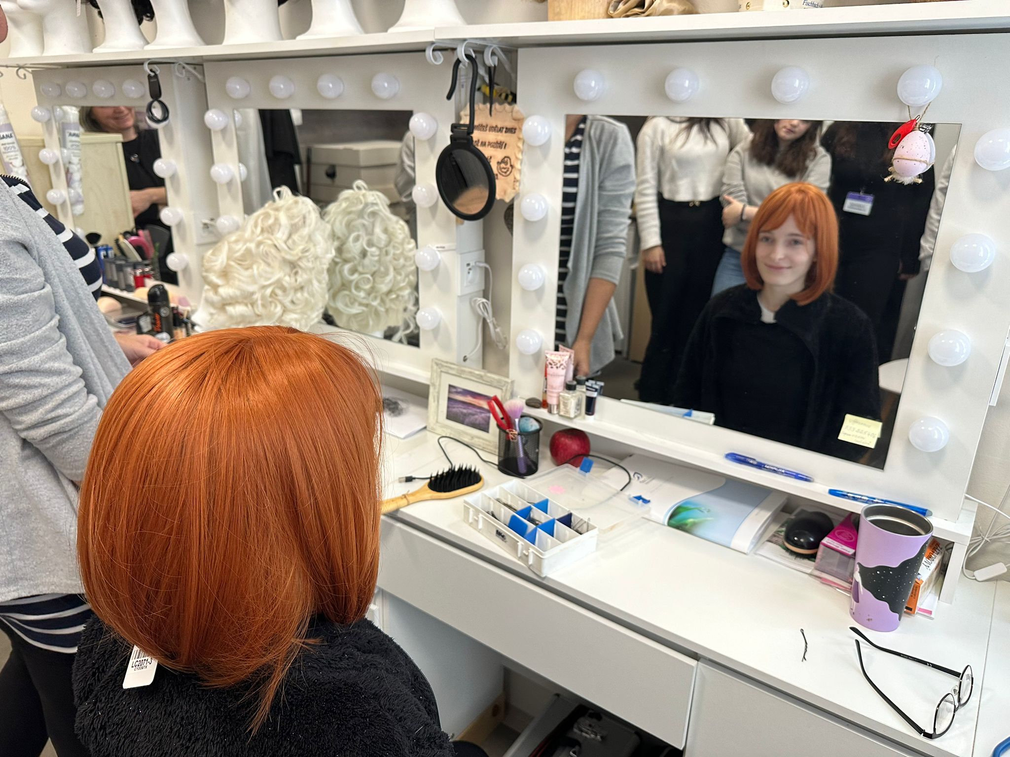 Poté následovala prohlídka zákulisí: navštívili jsme místa běžným publikem nenavštěvovaná, viděli jsme herce při zkoušce, spatřili krátkou ukázku baletu a měli možnost nahlédnout i do různých dílen. Velkým zážitkem byla návštěva vlásenkářské dílny: paní vlásenkářka nám vysvětlila, jak se vyrábějí a upravují paruky pro herce — jak se volí materiál, jak se paruka „usazuje“ na herce a jak se pečuje o vzhled během představení.