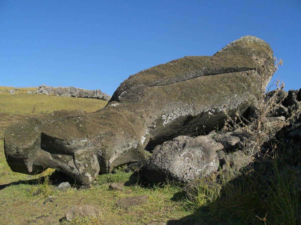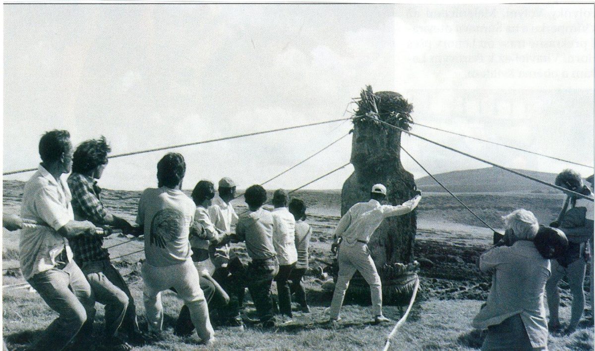 Jééé. To je na celou knihu. Když mi časopis Věda a technika mladých vydávala článek o mém řešení záhady transportu soch moai, chtěli, abych na závěr textu připsal dovětek, že svou teorii ověřím praktickým pokusem na Velikonočním ostrově. Když jsem oponoval, že je to daleko, finančně nad moje možnosti a že v Chile vládne Pinochet, navrhli ať napíši, že to ověříme praktickým pokusem u nás v Čechách s kamennou kopií sochy. Místo pracného tesání z kamene jsem ji ale raději odlil z betonu.