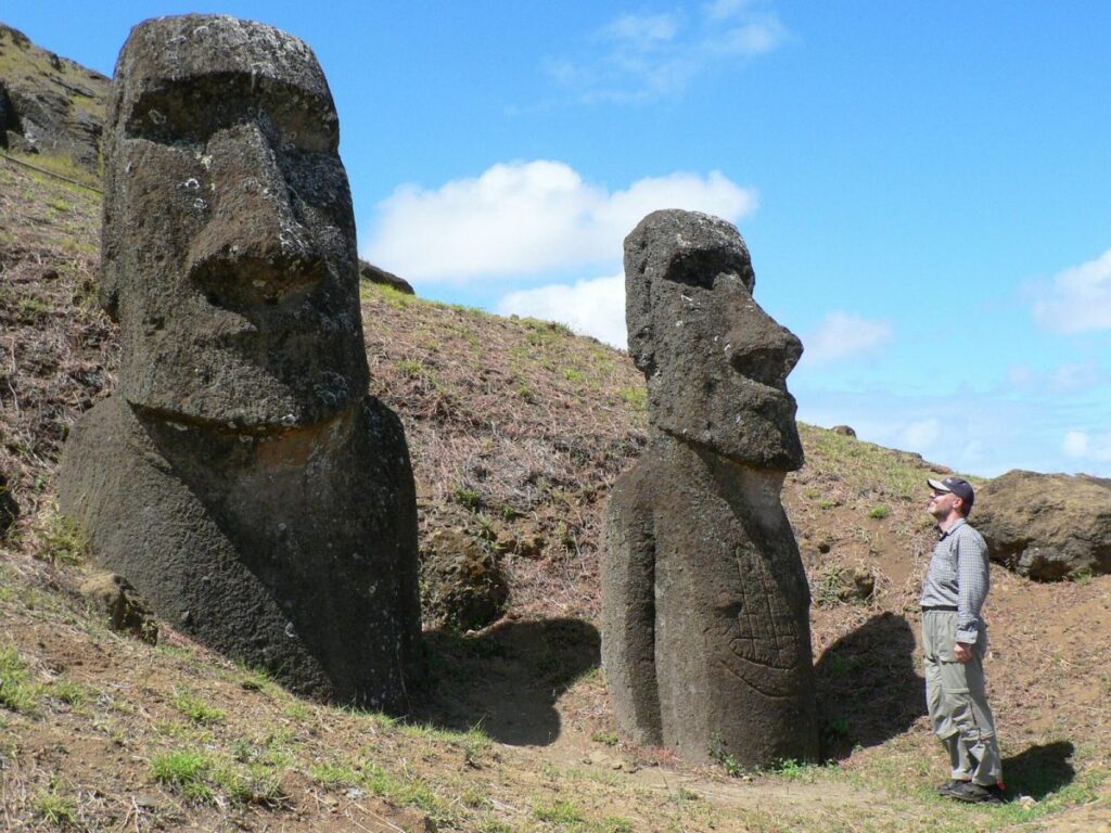 Záhada jak hrstka „primitivních“ domorodců dokázala napříč ostrovem dopravovat desítky tun těžké obří kamenné sochy vybudila badatele až k teoriím o UFO či nadřirozených silách a kouzlech domorodých čarodějnic. No a mě, jako technika, okouzlila domorodá legenda, že sochy „chodily“ ve stoje kývavým pohybem v přívratných polokroužcích. Nikdo ostrovanům nevěřil. Já jsem si ovšem představil, že podobným způsobem pracují s popelnicemi popeláři. Nebo, že přesně tak stěhujeme doma třeba ledničku. Měl jsem vyhráno. Pak už stačilo pár výpočtů a promyslet detaily a moje teorie byla na světě. Socha nám na ostrově opravdu kráčela a domorodci můj způsob transportu dodnes předvádějí při vystoupeních pro turisty. V letošním roce jeden z tamních souborů navštívil i Českou republiku. Ovšem sochu měli kvůli váze z plastu. Ale bylo to úžasně působivé a sklidili bouřlivé ovace.