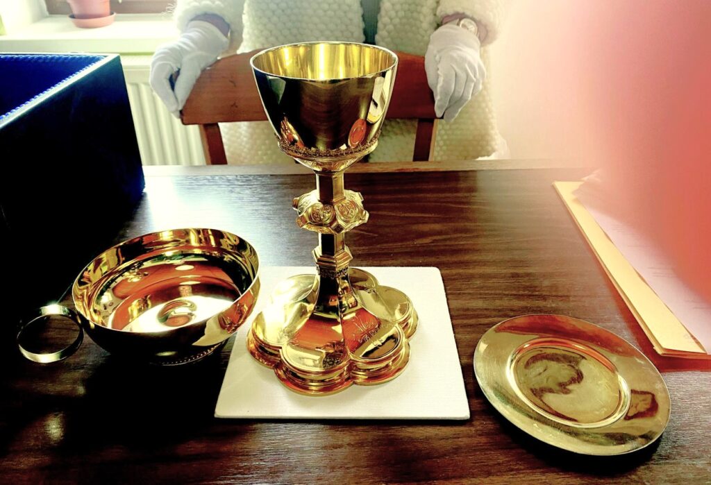 Guntherův kalich a hostie, které nyní našly své místo v Dobré Vodě.