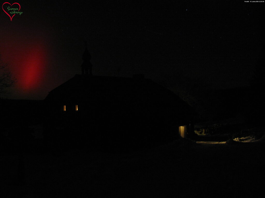 Naše webkamery zachytily chvíli, kdy se čas zastavil: střechy, kopce i tmavé lesy stály nehybně, zatímco nebe psalo svůj vlastní, dávný příběh. Byla to noc, kdy sever přišel pozdravit Šumavu – tiše, pokorně a s krásou, která se nedá vlastnit, jen prožít.