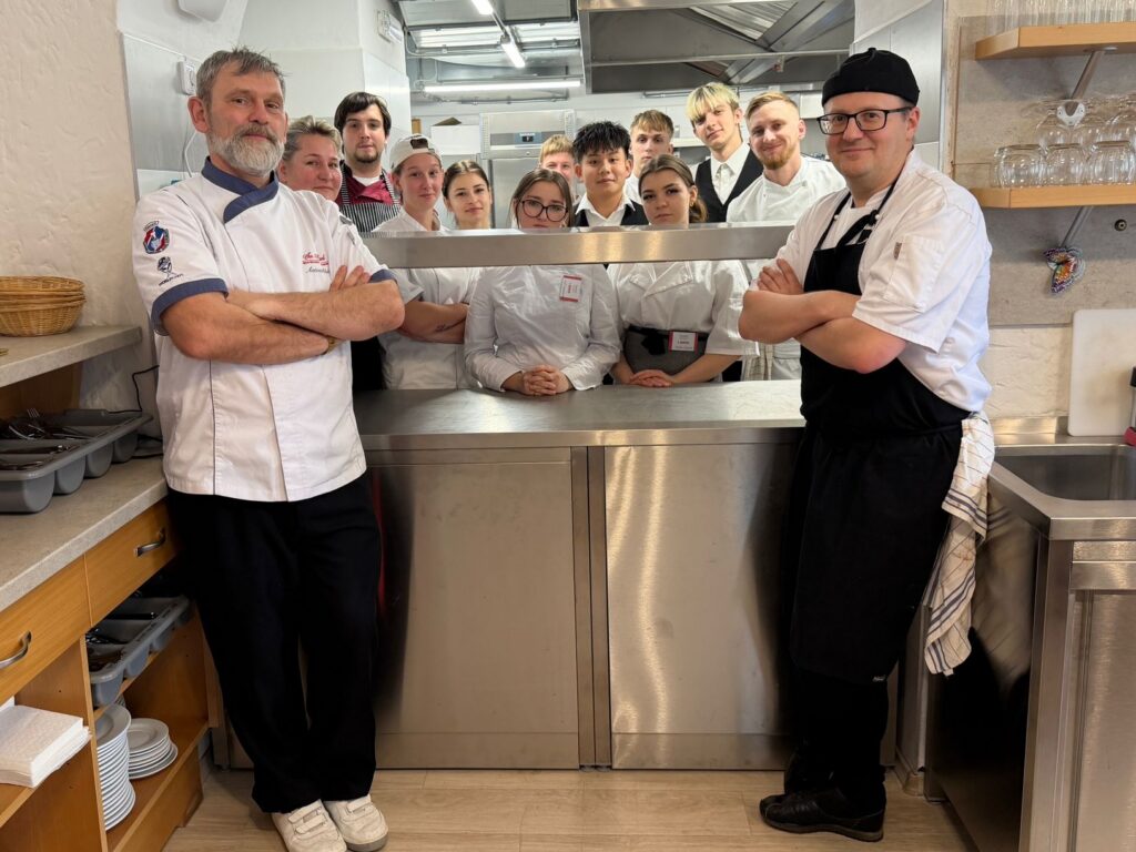 Po ukázkách si studenti vše vyzkoušeli na vlastních talířích. Pod odborným dohledem experimentovali s rozmístěním jednotlivých prvků, učili se pracovat s výškou, kontrasty i čistotou prezentace. Bylo zřejmé, že tato zkušenost pro ně byla nejen cennou lekcí, ale také velkou inspirací do budoucí praxe.