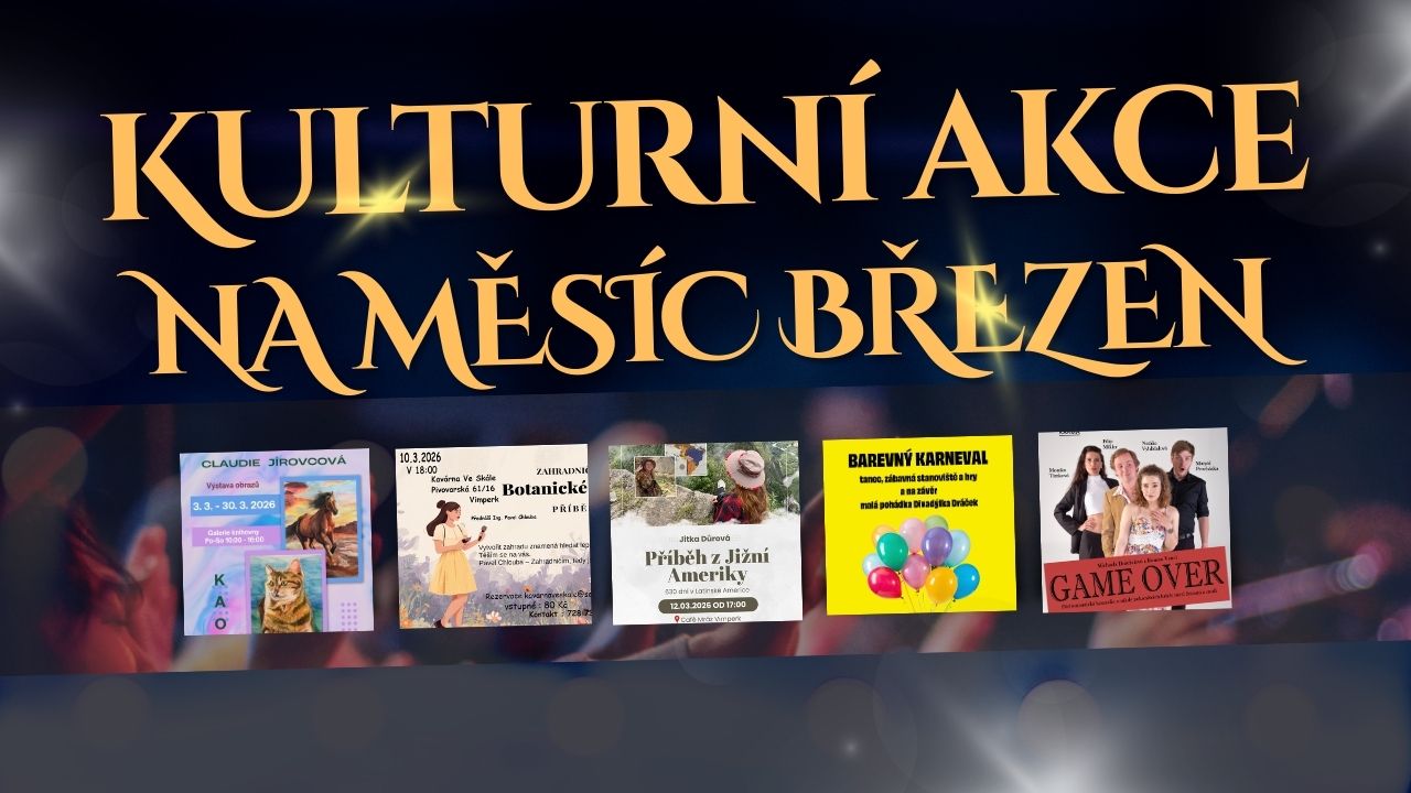 Březen ve Vimperku bude opět patřit kultuře. Připravili jsme pro vás přehled plakátů a pozvánek na koncerty, výstavy, besedy i další akce, které oživí dny a večery ve městě.
