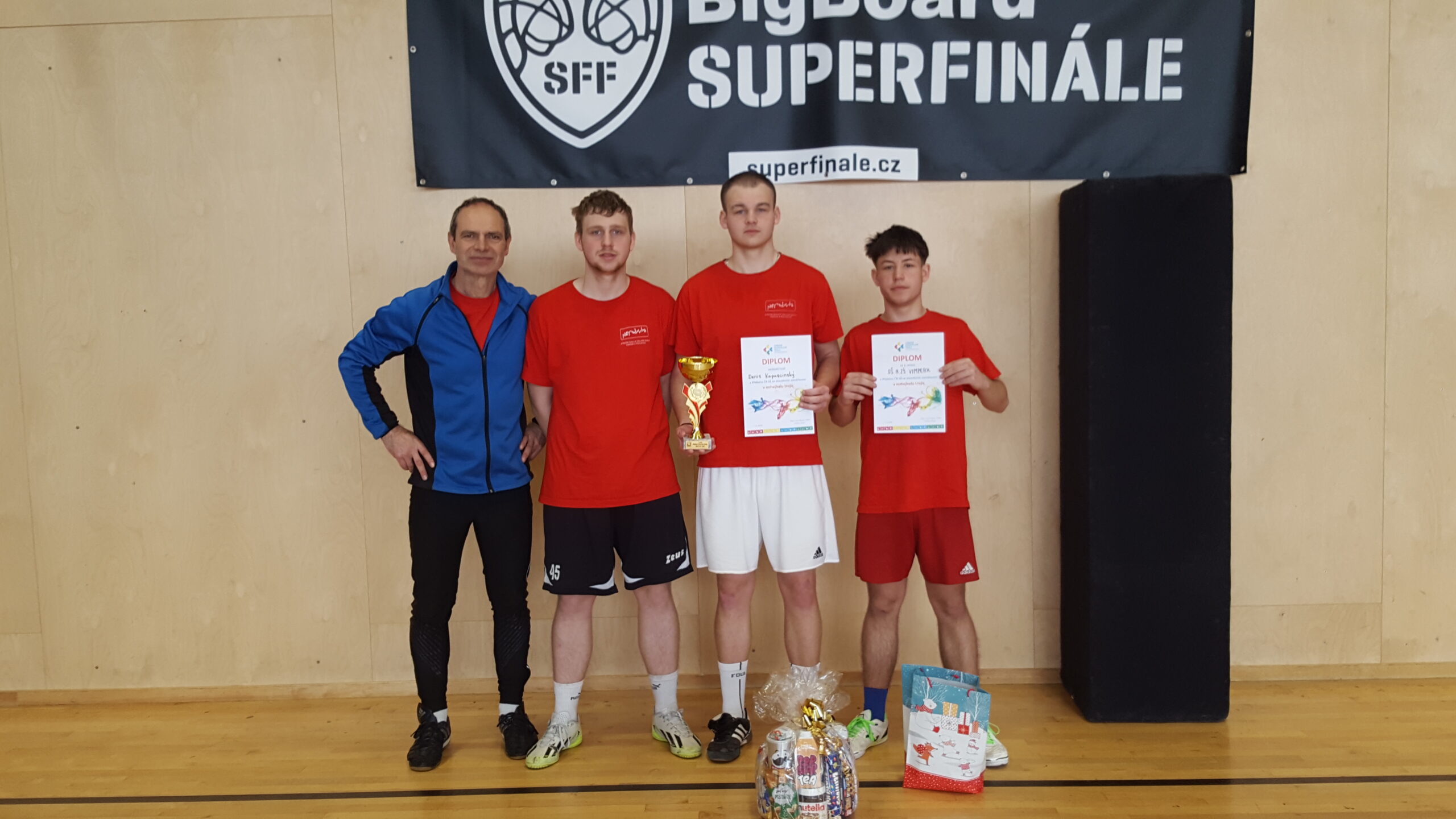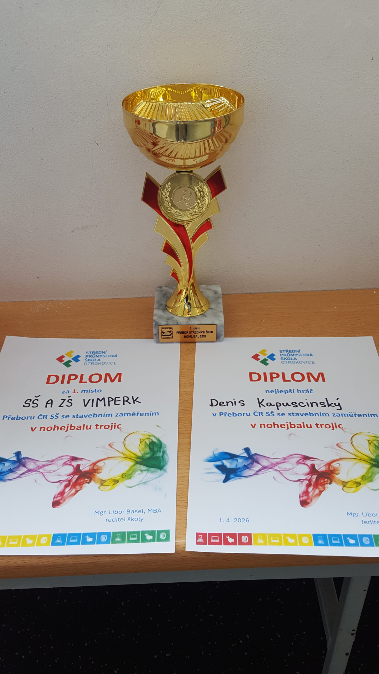 Dalším celorepublikovým turnajem Odborového svazu Stavba byl těsně před Velikonocemi nohejbalový turnaj trojic v Otrokovicích na Hané. Dlouhou cestu na Moravu absolvovali zástupci Nerudovky Denis Kapuscinský, Denis Pikolon a Patrik Horčic. V předchozích dvou ročnících se naše škola umístila v popředí a i letos měli ostatní soupeři z našeho týmu velký respekt již hned po úvodním utkání s Teplicemi. Ve dvoudenním turnaji naši kluci poráželi jednoho soupeře za druhým a v boji o 1. místo doslova smetli největšího soupeře z Brna. Navíc D. Kapuscinský byl vyhlášen zcela zaslouženě nejlepším hráčem turnaje. V boji o třetí místo tým Prahy porazil Ústí nad Labem. Kromě poháru za vítězství kluci obdrželi velký dárkový koš, který si na dlouhé cestě zpět spravedlivě mezi sebou rozdělili. Vítězům blahopřejeme a děkujeme za vzornou reprezentaci naší školy. Navážou na tento velký úspěch za tři týdny i florbalisté?