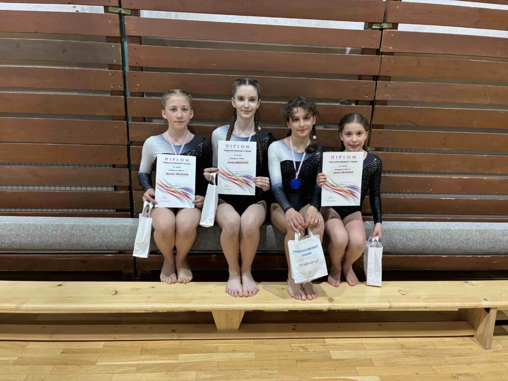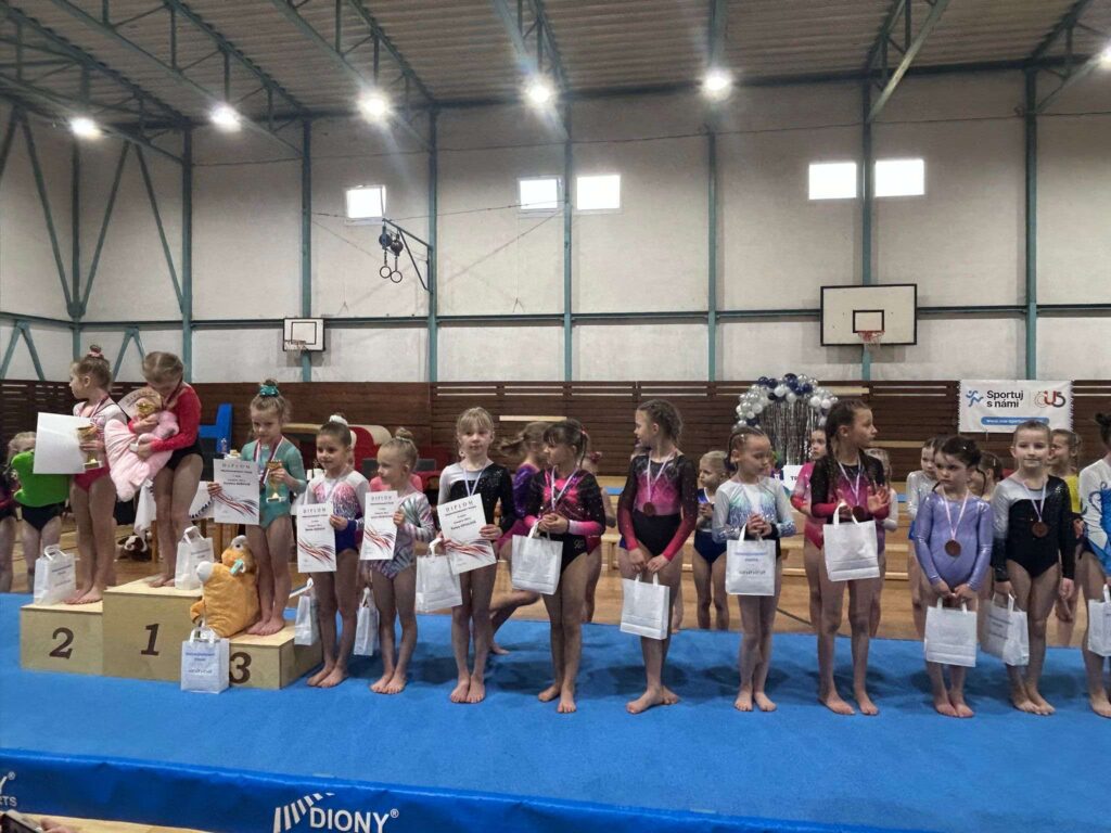 V náročné kategorii VS1A, kde už musí gymnastka zvládnout stojku na kladině, se představila úplně poprvé osmiletá Anetka Randáková. Povedl se jí celkově nejlepší přeskok ze všech závodnic a výsledné 4. místo nás velmi potěšilo. V kategorii VS1B nás zastoupila Štěpánka Pražáková, která si odnesla hezké 11. místo.