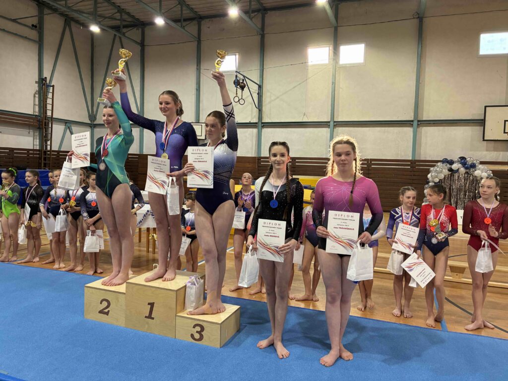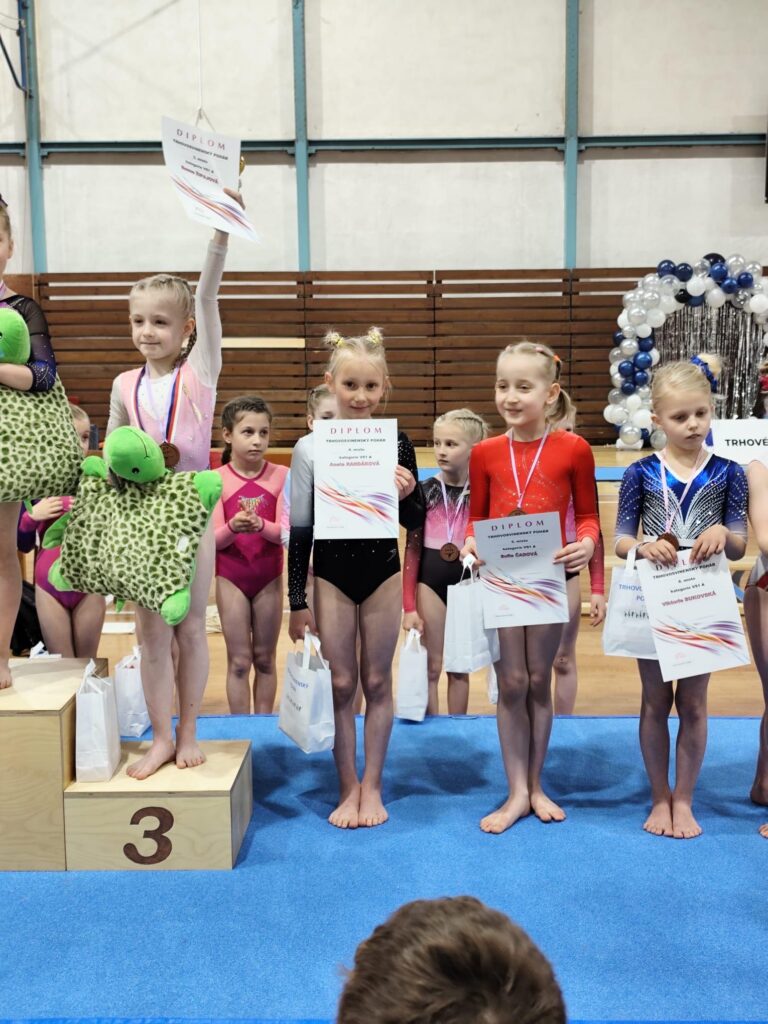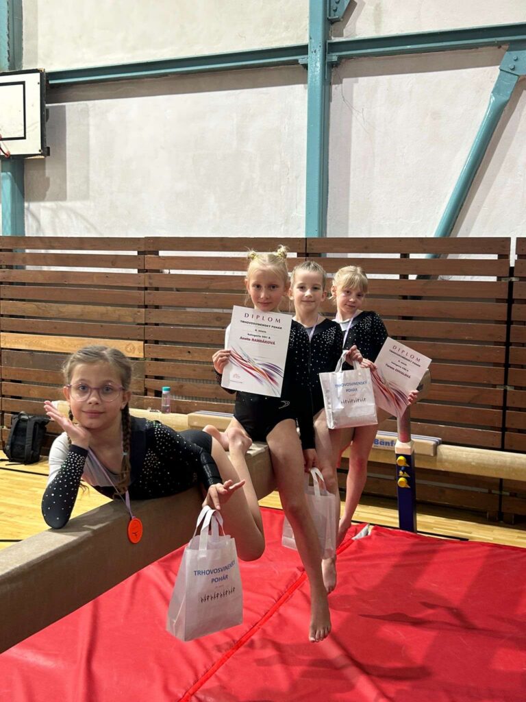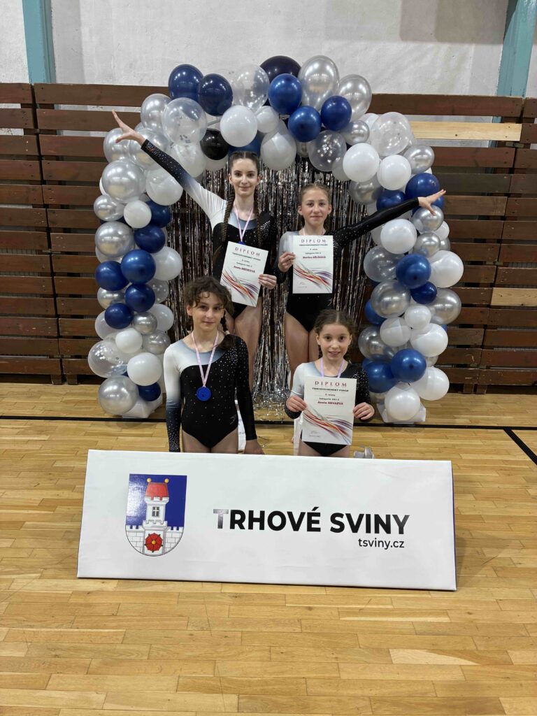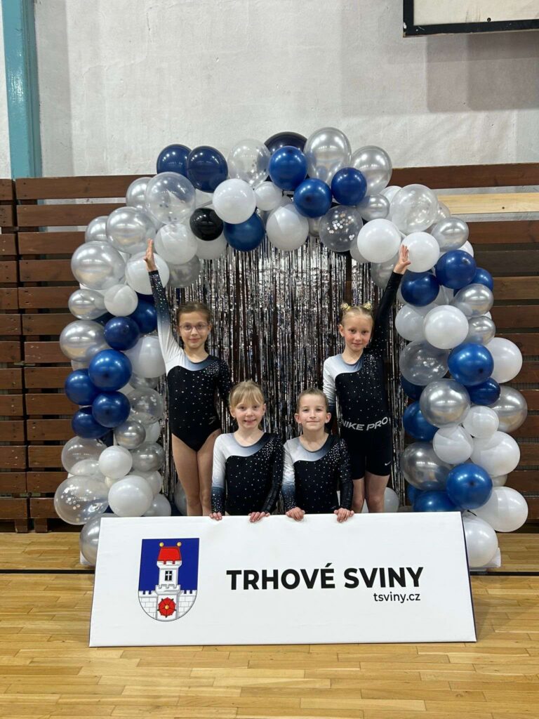 Na sobotní závod 11.4.2026 jsme tentokráte vyrazily do Trhových Svinů v osmičlenné sestavě. Hned jako první dopoledne odcvičily děvčata v kategorii VS0A, kde nás v nejvíce obsazené kategorii reprezentovaly Terezka Chvalová a Maruška Vondráčková. Terezka předvedla parádní výkony na všech čtyřech nářadích a umístila se na krásném 6. místě a Maruška na 12.místě.