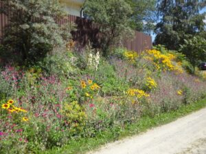 Kvetoucí břeh v zahrádkářské kolonii Dříve zanedbaný,dnes kvetoucí břeh u cesty v zahrádkářské kolonii nad Pravětínským potokem přitahuje pohledy kolemjdoucích místních,v této době i