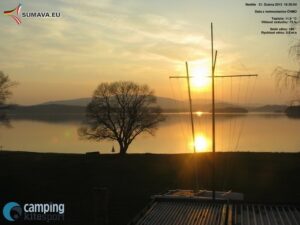 Velmi pěkné záběry poskytly šumavské webkamery v týdnu od 22. do 28. dubna. Prosvítající slunce přes mraky vyfotila kamera na Libíně, překrásný západ slunce