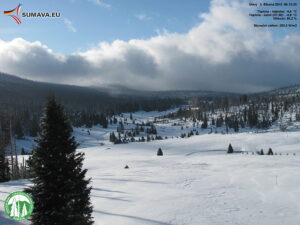 I přes ochlazení, které na Šumavu dorazilo ve středu 11. března, sněhová pokrývka až na výjimky nijak nepřibyla. Pouze Plechý má vyšší pokrývku než před