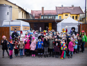 Naprosto neomylně zamířily maškary z Pampelišky pro ty nejlepší masopustní koblihy v Sušici Pekařství Karla Rendla odměňuje maškary koblihami, které kreslí vousy na tvář